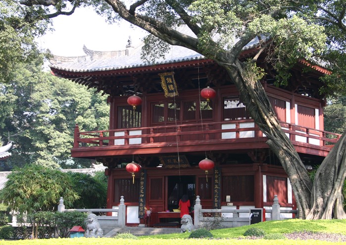 光孝寺的建筑規(guī)模雄偉,版權(quán)所有山東聊城聊之旅國(guó)際旅行社有限公司,轉(zhuǎn)載必究!為嶺南叢林之冠。它不僅在佛教歷史上占有重要的位置,并且開(kāi)創(chuàng)了華南建筑史上獨(dú)有的風(fēng)格和流派。原有十一殿:大殿、毗盧殿、西方三圣殿、觀音殿、羅漢殿、六祖殿、伽藍(lán)殿、韋陀殿、天王殿、悉達(dá)太子殿、輪藏殿;六堂:戒堂、風(fēng)幡堂、客堂、禪堂、檀越堂、十賢堂;三樓:睡佛樓、鐘樓、鼓樓。由于歷史變遷,寺院幾遭破壞。1987年落實(shí)宗教政策,將光孝寺歸還佛教界,經(jīng)過(guò)十年的努力,寺院現(xiàn)已修葺一新,至今光孝寺有山門、天王殿、大雄寶殿、鐘鼓樓、伽藍(lán)殿、六祖殿、睡佛樓、洗缽泉、東西鐵塔、大悲幢、痙發(fā)塔等建筑與歷代碑記文物。