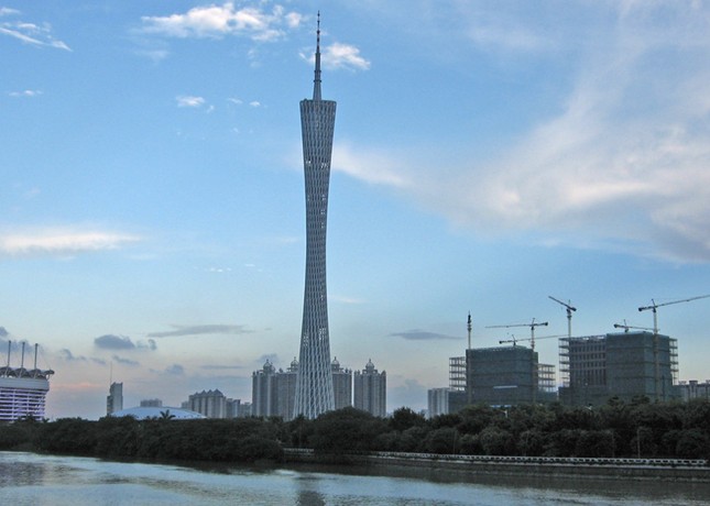 廣州塔于2009年九月建成,包括發(fā)射天線在內,廣州新電視塔高達600米。為中國第一高塔,世界第四高塔。