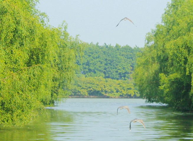 南沙人工濕地游覽區(qū)地處出??谥榻靼?。圍墾公司經(jīng)過(guò)20多年的圍墾和經(jīng)營(yíng)中,保持了農(nóng)耕水養(yǎng)的產(chǎn)業(yè)結(jié)構(gòu),土地原始狀態(tài)良好,生態(tài)環(huán)境得到妥善保護(hù)。放養(yǎng)魚(yú)蝦蟹,種植蓮藕、香蕉、甘蔗,碧水藍(lán)天,滿目青翠。在19東圍約200公頃的游覽核心區(qū),種植有成片的10多個(gè)品種的紅樹(shù)林、蘆葦,吸引各種鳥(niǎo)類(lèi)在這方樂(lè)土繁衍生息, 形成珠江三角州難得一見(jiàn)的鳥(niǎo)類(lèi)天堂。每年冬季,成千上萬(wàn)的絲光掠鳥(niǎo)從北方飛來(lái)越冬,有24 種上萬(wàn)只鳥(niǎo)類(lèi)在此棲息覓食,其中包括非常珍稀的黑面琵鷺、白琵鷺、黑翅長(zhǎng)腳鷸等野鴨成群、蒼鷺佇立。以吸引多品種和多數(shù)量的飛鳥(niǎo)在公園內(nèi)覓食、棲息、繁衍,以種植紅樹(shù)林維護(hù)生態(tài),以種植蘆葦形成一個(gè)上千畝的蘆葦蕩,版權(quán)所有山東聊城聊之旅國(guó)際旅行社有限公司,轉(zhuǎn)載必究!以大面積種植觀賞性荷花,形成壯觀的荷景,以開(kāi)挖約25公里的迂回曲折小河,形成曲水迷宮。在這里游覽,可享受 “曲水蘆葦蕩,鳥(niǎo)息紅樹(shù)林, 萬(wàn)頃荷色美,人鳥(niǎo)樂(lè)游悠。”的境意。2011年,經(jīng)過(guò)全民投票,南沙濕地的公園的“濕地晚唱”被評(píng)為“羊城新八景”之一。