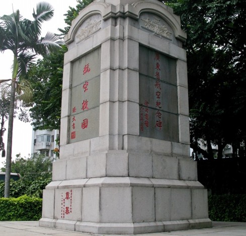 銅像(1個(gè))、銅獅(2只)和銅鼎(8個(gè))原始物,在1938年廣州淪陷時(shí)被日軍奪去了。1991廣州雕塑院尹積昌教授根據(jù)有關(guān)記載加以復(fù)制。其實(shí),一個(gè)銅像、二只獅子、八個(gè)銅像寶鼎,這數(shù)字不是巧合,而是專門用來紀(jì)念“一 二八”淞滬抗日事件的。