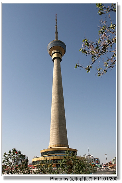中央電視塔由棧橋廣場、退臺環(huán)廊、塔基、塔座、塔身、塔樓和桅桿組成。塔的造型別致,祈年殿式的重檐形式塔座;從地面升高到223米處,筒徑半徑向外挑出10米,形成一宮燈形的塔樓。這樣的高塔在國外一般采用鋼結(jié)構(gòu),要耗費數(shù)目驚人的鋼材。為了提高塔的整體穩(wěn)定性和抗震性,中央電視塔采取的是混凝土整體澆注法,能達到抵抗九級地震的要求。