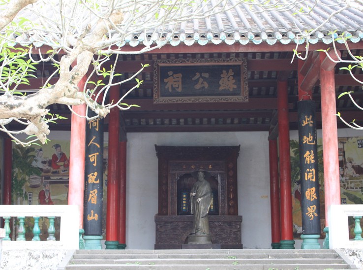 蘇公祠與五公祠相毗鄰,原為金粟庵。明萬(wàn)歷時(shí)在此建立祠堂,稱蘇公祠。是紀(jì)念宋代著名詩(shī)人蘇軾,同時(shí),也崇祀他的弟弟蘇轍,故亦稱二蘇祠。祠內(nèi)陳列蘇東坡詩(shī)詞碑刻等30多塊。祠前有一對(duì)聯(lián):“此地能開眼界,何人可配眉山”。因蘇東坡謫居海南地區(qū),講學(xué)明道,教化日興,瓊州人文之盛,實(shí)自蘇軾起。