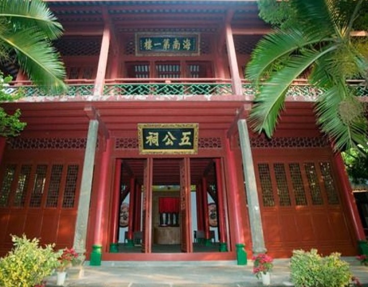“五公”是指唐宋兩代被朝廷貶低來(lái)海南的五位歷史名臣,即唐朝宰相李德裕、宋朝宰相李綱、趙鼎及宋代大學(xué)士李光、胡全。他們?nèi)f里投荒,不易其志,為海南島的文化教育、經(jīng)濟(jì)的發(fā)展做出了不朽的貢獻(xiàn)。海南人民歷代建祠祭祀他們。清光緒十五年(1889年),雷瓊道道臺(tái)珠采修建海南第一樓紀(jì)念“五公”,故名五公祠,后來(lái)便以五公祠稱呼海南第一樓及其周圍一組古建筑。