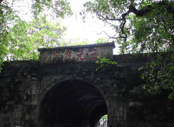 三元及第坊在靖江王城南面正陽(yáng)(端禮)門(mén)上。清代學(xué)者阮元任兩廣總督時(shí)為連中“三元”的陳繼昌所立。三元, 是省級(jí)的“鄉(xiāng)試”、全國(guó)的“會(huì)試”和皇帝親自主持的“殿試”均名列第一, 分別獲得“解元”、“會(huì)元”、“狀元”稱(chēng)號(hào)的縮略。自唐代以科舉取士1000多年來(lái), 連中三元的僅13人, 清代兩百多年中僅有2人。陳繼昌是臨桂人, 把用巨石鐫刻的牌坊置于王城正門(mén)之上, 是封建社會(huì)給科舉成名者的至高榮譽(yù)。