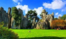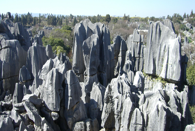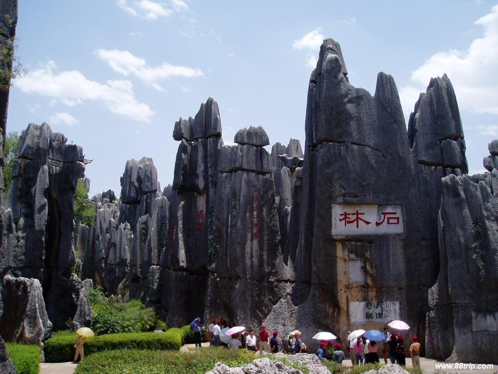 石林位于昆明市東,是世界罕見的風(fēng)景名勝,是大自然鬼斧神工的杰作。在路南廣達(dá)400平方公里的區(qū)域內(nèi),遍布著上百個(gè)黑色大森林一般的巨石群。有的獨(dú)立成景,有的縱橫交錯(cuò),連成一片,占地?cái)?shù)十畝,上百畝不等。最典型的一片叫李子營石林,只見奇石拔地而起,參差峰巒,千姿百態(tài),巧奪天工,被人們譽(yù)為“天下第一奇觀”。