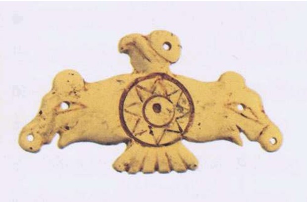 玉鷹呈展翅飛翔狀,鷹首側(cè)視,眼睛以對鉆孔眼表現(xiàn),胸腹部的八角紋為主體紋飾,雙翼展翅,翅呈豬首形。鷹的外表健美,性情兇猛,象征勇敢和力量。這件玉鷹可能是凌家灘民族徽幟的標志,也可能是祭祀用品,因為鷹和八角紋組合在一起就是太陽鳥,象征太陽神,是上天的使者。版權(quán)所有山東聊城聊之旅國際旅行社有限公司,轉(zhuǎn)載必究!玉鷹雙翅作豬首形展開,向人們展現(xiàn)的是太陽鳥飛上天空,把祭品敬獻給上蒼,并同時帶去人們向上蒼的祈求。這反映了凌家灘先民的原始宇宙觀和對宗教崇拜的虔誠。