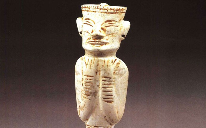 玉人為浮雕,第一次展示出了原始人類完整的形體風采:長方臉、濃眉大眼、雙眼皮、蒜頭鼻、大耳、大嘴,它的體形和五官表現(xiàn)出蒙古人種所特有的特征,頭上戴的圓冠和腰部飾有斜條紋的腰帶表明當時已有了很發(fā)達的紡織技術(shù),玉人上唇留有八字胡,說明當時已有了剃須工具,玉人的出現(xiàn)表明社會由原先對動物和自然的崇拜已轉(zhuǎn)向了對人的崇拜,表明社會觀念已出現(xiàn)了轉(zhuǎn)變。另外,玉人兩臂彎曲,五指張開放在胸前,臂上飾滿了玉環(huán),這說明此時人們已有了審美觀念,知道佩戴首飾來裝飾自己了。