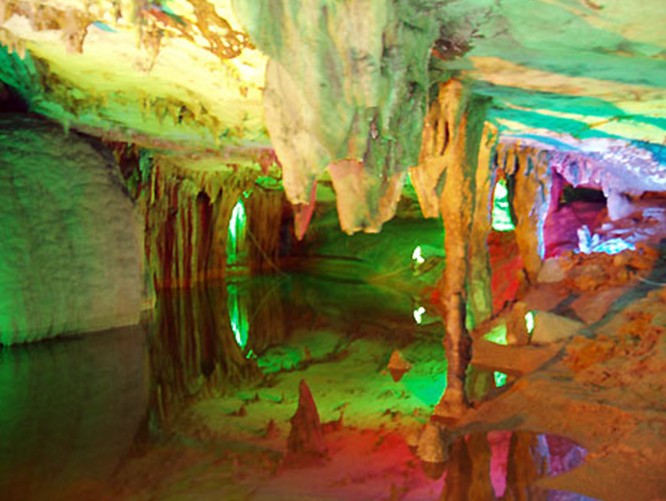 水洞則由一條地下河貫穿始終,清澈的河水,九曲十八彎,曲曲有奇景,灣灣有氣象。水流平緩處,平靜如鏡,萬籟俱寂,水流湍急處,瑯瑯有聲,有的地方如珠落玉盤,有的地方如琴瑟和鳴,有的地方如金風(fēng)過林,令人心曠神怡,樂不思歸。各式各樣的石鐘乳、石幔分布其中,如奇花異卉,珍禽怪獸,栩栩如生,仿佛有許多故事要向人們訴說。水洞由于地下河的存在,洞內(nèi)長期維持著21度的恒溫,不管洞外是多么的寒冷或炎熱,一進洞內(nèi)都能體味春天般的溫暖。洞口河水蜿蜓,版權(quán)所有山東聊城聊之旅國際旅行社有限公司,轉(zhuǎn)載必究!古木婆娑,奇花暗香,令人覺得身在世外桃源。文人關(guān)師古詩《圣跡蒼巖》曰:“怪石奇峰另僻天,卻凝洞里有遺仙,游人筆墨難窮妙,贏得清巖萬古傳”。圣跡蒼巖有彎彎的小河,清清的流水,簡樸的小橋,兩岸蒼勁古樸的老樹,構(gòu)成一幅動人的田園風(fēng)情畫卷。每年7月中旬至8月中旬葡萄成然時節(jié),游人如鯽,到巖里葡萄園采摘,樂趣無窮。