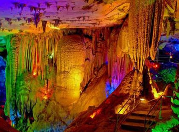 圣跡蒼巖分旱巖和地下河,天然溶洞分為旱洞和水洞兩個部分,已有3億年的歷史。為舊時“連平八景”之冠,洞內(nèi)石鐘乳千姿百態(tài),維妙維肖,置身其中,如步入神奇的藝術(shù)華堂。現(xiàn)是連平縣乃至河源市的著名旅游景區(qū),常年都有大批游客到此游覽、觀光。旱洞橫穿山腰,分3層,高89米,洞內(nèi)面積達400多平方米,可容數(shù)千人。溶洞奇觀千姿百態(tài),神奇獨特,巧奪天工。巖洞內(nèi)石筍、石鐘乳千姿百態(tài),琳瑯滿目,“層巖石佛”、“姜公釣魚”、“石靈猴”、“石觀音”、“九龍過江”、“大佛坐禪”、“擎天柱”等惟妙惟肖。