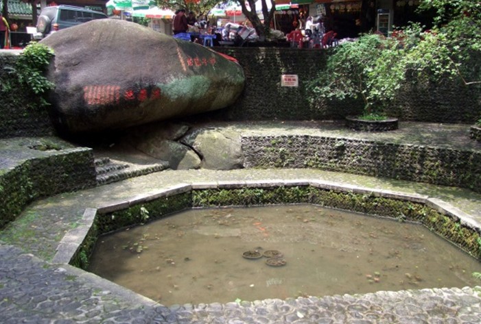 朱明洞洞門外右側(cè)有一巨石,據(jù)《羅浮山志》記載,蘇東坡曾在此獲得六條銅魚,一條銅龍的“朝斗壇”。這里是羅浮山吸引最多騷人墨客的地方。