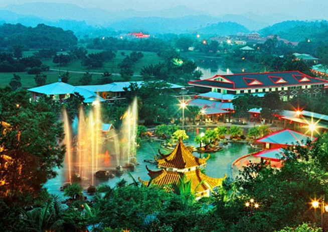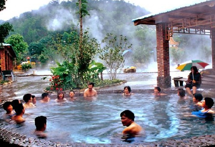在中國(guó)第一個(gè)溫泉之鄉(xiāng)——恩平市,有一座被環(huán)嶺群峰擁抱著的溫泉山,山下的三十多處自噴溫泉,日流量為6000立方米,其溫泉水溫高達(dá)73℃,水質(zhì)晶瑩幼滑,并含有偏硅酸、氟、氫、硫等多種有益于人體健康的元素,是世界少有的滑溫泉,這就是帝都溫泉。