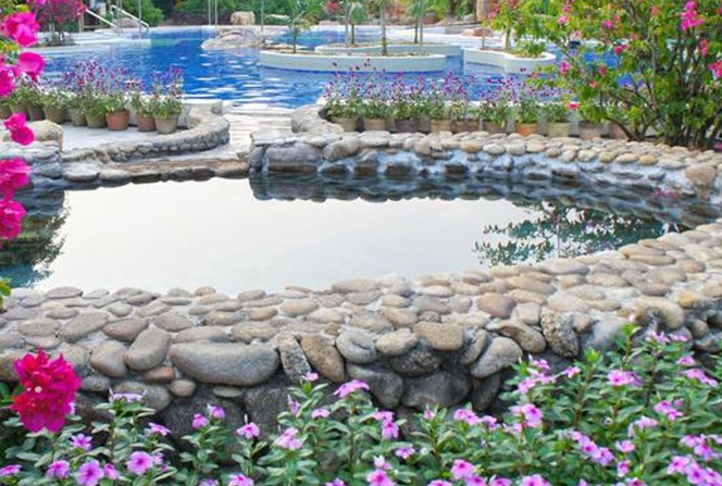 金山溫泉最引人入勝之處在于每天將2800多立方米、高達85℃的溫泉水從室內(nèi)引出到室外,開辟了22個大小不一的泳池,總面積達到8000平方米,共建有22個大小不一的溫泉泳池和28個日式溫泉池。日式溫泉池按溫度分為高溫池、常溫池、冷水池;按功能分為理療池、娛樂池、通用池。在1號池中,水溫達70-80℃。
