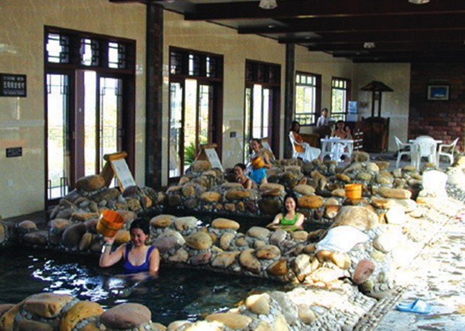 本世紀(jì)中葉,雖有科學(xué)家倡議,辟金山溫泉為地?zé)崮茉?,惜因?guó)力所限,未能如愿。近年,當(dāng)?shù)刎?cái)政斥資6億元,辟地800余畝,于溫泉四周,建成溫泉景區(qū)、度假酒店、健身中心及豪華別墅,雖溫泉日流出水量2000余噸,以每人每日用水一噸計(jì),年可接待游客80萬(wàn)眾,但目前客房?jī)H200余間,每于周末,人滿為患總統(tǒng)套間亦不閑置,有遠(yuǎn)客欲求于度假酒店一宿而不可得,唯有沐后復(fù)驅(qū)車折返市區(qū)。岑副市長(zhǎng)介紹,當(dāng)局已全力投資,籌建國(guó)際會(huì)議中心、會(huì)員大夏等配套設(shè)施,期至后年,當(dāng)可年接待60萬(wàn)人次,一座溫泉新城,于其時(shí)也,將矗立于金山吉水之間。