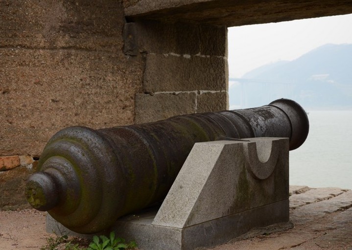 崖門古炮臺(tái)位于新會(huì)崖門出海水道東岸的古井鎮(zhèn)官?zèng)_村,最早設(shè)置于清康熙五十七年(1718年),并形成雛形,后于清嘉慶十四年(1809年)正式設(shè)立興建。崖門古炮臺(tái)雄踞新會(huì)崖山,倚山面海,緊緊扼守著珠江八大出海口之一——崖門通往南海的進(jìn)出水道。