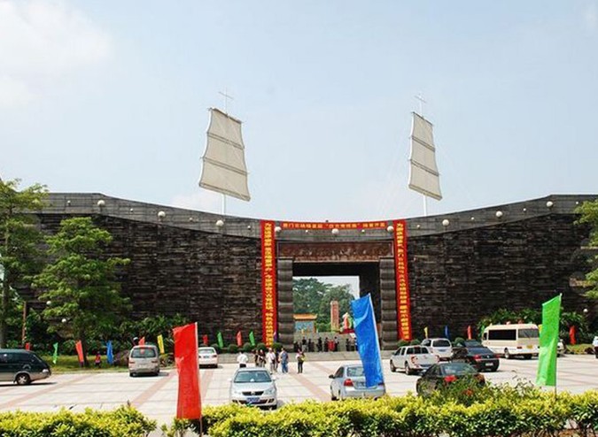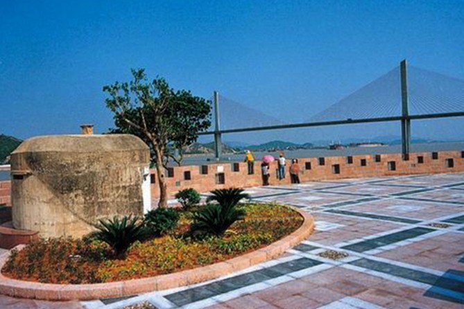 崖門古炮臺(tái)位于新會(huì)崖門出海水道東岸的古井鎮(zhèn)官?zèng)_村,最早設(shè)置于清康熙五十七年(1718年),并形成雛形,后于清嘉慶十四年(1809年)正式設(shè)立興建。崖門古炮臺(tái)雄踞新會(huì)崖山,倚山面海,緊緊扼守著珠江八大出??谥弧麻T通往南海的進(jìn)出水道。崖門大橋是跨越崖門水道的特大型雙塔單索面斜拉橋,全長(zhǎng)1289米,跨度668米,橋下可通航5萬(wàn)噸級(jí)船舶,跨度之大為目前國(guó)內(nèi)同類型橋梁之最,亞洲第一,世界第二。