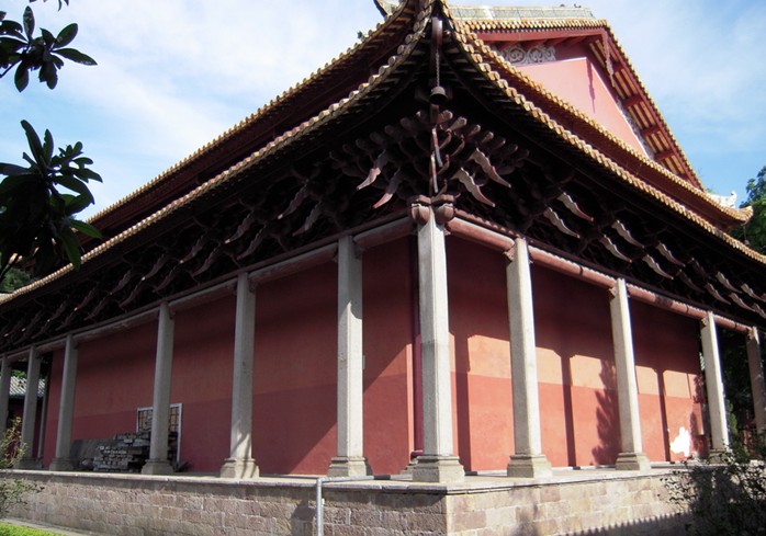 新會學(xué)宮又名文廟、孔廟。位于會城馬山西側(cè)。占地12189平方米,建筑面積3225平方米,學(xué)宮為廣東省重點(diǎn)文物保護(hù)單位,江門文物保護(hù)單位,始建于宋慶歷四年(1044年)。當(dāng)時是按山東曲阜孔廟圖案,因地制宜建造。學(xué)宮在元代被毀于兵火,明代重建。以后歷代均有重修。1956年除重修遺存建筑外,并在原遺址上,重建戟門(大成門)、東西兩庫、兩廡、兩廊和尊經(jīng)閣、“蹈和”、“履中”兩殿。近年,又以仿古建筑工藝,把學(xué)宮正門殿堂修葺粉飾一新。