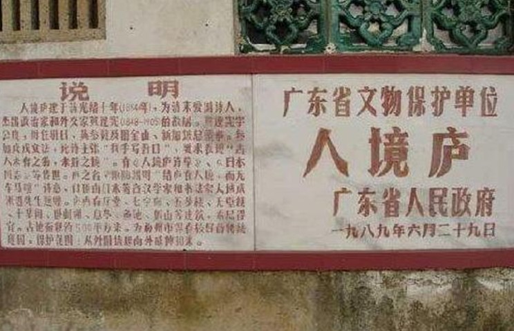 人境廬取意于東晉大詩人陶淵明“結(jié)廬在人境,而無車馬暄”的名句,是我國著名愛國詩人、杰出的外交家黃遵憲的故居,為廣東省重點文物保護單位。它坐落在市區(qū)東山大橋下的小溪唇,于1884年由黃遵憲親自設(shè)計建造,距今已有一百多年的歷史。這座故居占地面積不大,但建筑精巧,布局合理,里面有會客廳、書房、臥室、藏書室、無壁樓、五步樓、十步閣、息亭、花壇、假山等,藏書室內(nèi)有黃遵憲的各種著作和讀過的書共八千多冊。