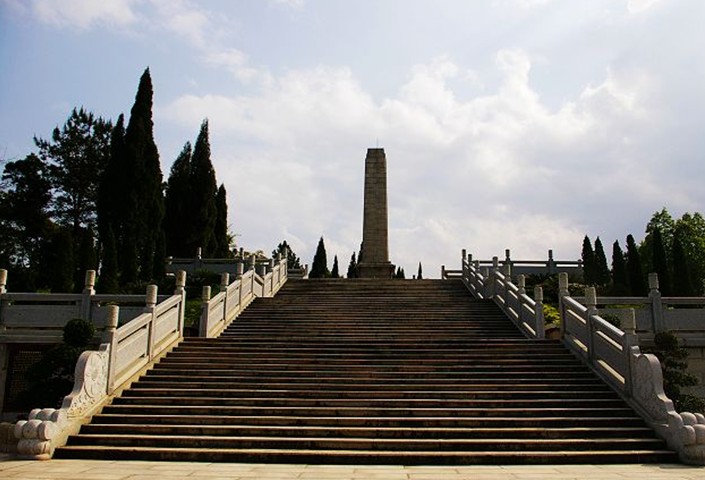 來(lái)到筆枝山頂,“八一”南昌起義軍三河壩戰(zhàn)役烈士紀(jì)念碑就展現(xiàn)在我們面前。這座山,居高臨江,地勢(shì)險(xiǎn)要,易守難攻,總面積達(dá)18萬(wàn)平方米,占據(jù)了筆枝山就等于控制了韓江的交通。溯汀江北上,可到福建長(zhǎng)汀、上杭;沿梅江西航可到江西贛南一帶;沿梅潭河?xùn)|往可到福建閩南的九峰等地;順韓江而下直通潮州、汕頭。舊稱(chēng)“西通兩粵、北達(dá)兩京”,大家說(shuō)筆枝山的位置重不重要啊?“八一”起義軍三河壩戰(zhàn)役便是在這座山上激烈開(kāi)展的。為了紀(jì)念革命先輩的豐功偉績(jī)和這次戰(zhàn)役犧牲的烈士,1963年12月廣東省人民政府撥款興建了紀(jì)念碑,碑高15米,用35種規(guī)格的343塊密紋花崗石砌建而成。碑正面鐫刻著朱德同志的親筆題字:“八一”起義軍三河壩戰(zhàn)役烈士紀(jì)念碑。碑座上刻著第二十五師師長(zhǎng)周士第撰寫(xiě)的碑文。如今“八一”起義軍三河壩戰(zhàn)役烈士紀(jì)念碑已被列為國(guó)家級(jí)革命烈士紀(jì)念遺址重點(diǎn)保護(hù)單位、省級(jí)文物保護(hù)單位,并成為梅州市、大埔縣愛(ài)國(guó)主義教育、革命傳統(tǒng)教育的基地。