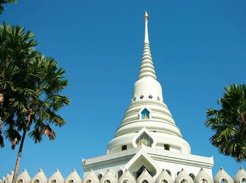 泰國人都叫它“國王廟”。泰國是佛教國家,走進泰國每一座寺廟,都可以看到刺眼的金光。彷佛泰國人把所有的黃金都慧贈給他們所虔誠膜拜的佛祖,以至于讓你懷疑泰國是不是已經(jīng)躍然成為發(fā)達國家或者黃金已經(jīng)不再是稀有金屬。九世皇廟的建筑款式與其它廟宇不同,樸素精巧,沒有其它寺廟的金碧輝煌和規(guī)模宏大,一切遵照國王諭示,以節(jié)簡和樸素為原則,蓋成了佛殿、方丈樓、僧舍、綜合樓、水池、廚房和其他必需用房子,每座建筑都是白色的,表示純潔、漂亮.泰國的九世皇廟位于芭堤雅,是專為當今國王建造的未來行宮。泰國民眾 圣潔的舍利子塔。