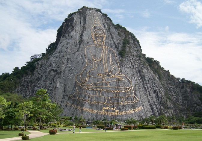此為芭達(dá)雅最大的釋迦牟尼佛雕像,共用18噸重的24K金雕塑而成,此山中亦挖掘出許多的古佛像。七珍佛山令人大開(kāi)眼界,傳說(shuō)這是一個(gè)高僧為當(dāng)今九世皇找的龍脈所在,就著山形剖開(kāi)一面山,削平山面,依山用4噸黃金刻了一座大佛,據(jù)說(shuō)是用高科技鐳射畫(huà)出打坐佛像,用意大利進(jìn)口的金鑲嵌線條,金線耀眼。