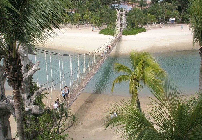 圣陶沙島通過一條堤道跨海大橋與新加坡大陸連為一個整體,游客前往可以乘坐纜車、游船和汽車三種交通工具,十公方便。島上遍布廳花異草,環(huán)境十分優(yōu)美。同時,由于島上擁有美麗的海灘、眾多展覽館以及各式各樣的娛樂設施,來觀光游覽者絡繹不絕。