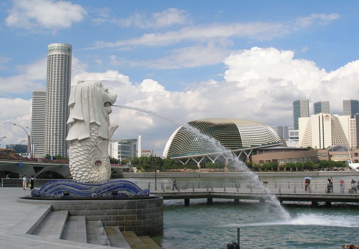 魚尾獅是一種虛構的魚身獅頭的動物。它在1964年由時任Van Kleef 水族館館長的Fraser Brunner先生所設計的。兩年后被新加坡旅游局采用作為標志,一直沿用到1997年。該塑像高8.6米,重70噸,獅子口中噴出一股清水,是由雕刻家,林浪新先生和他的兩個孩子于1972年共同雕塑的,另一座高2米的小型魚尾獅雕像也在同一時期完成。獅頭魚身坐立在水波上的魚尾獅,其設計概念是將現(xiàn)實和傳說合二為一:獅頭代表傳說中的“獅城”,至于塑像的魚尾造型,浮泳于層層海浪間,既代表新加坡從漁港變成商港的特性,同時也象征著我們當年飄洋過海,南來謀生求存,刻苦耐勞的祖祖輩輩們。1972年9月15日,當時擔任新加坡總理的李光耀為魚尾獅塑像主持開幕,大小魚尾獅最初建立在離現(xiàn)址120米的安德遜橋邊的魚尾獅公園。他在致詞時表示,希望魚尾獅能成為新加坡的象征,就如艾菲爾塔是巴黎的象征一樣。為了紀念這項盛事,制定了一塊銅匾,銅匾上刻有獻詞:“魚尾獅是新加坡迎賓好客的象徵”。一言九鼎,隨后這數(shù)十年里,魚尾獅成功打造出新加坡的國際形象。隨著國家政策大力鼓勵發(fā)展旅游業(yè),以及旅游局雄心萬丈的促銷策略,新加坡作為一個旅游勝地的知名度也打響起來,魚尾獅塑像更成為吸引外來游客拍攝“到此一游”照片的最佳鏡頭。由于具有顯著的表征性,這個原屬商用性質的標志,因而從旅游的層次,逐漸擴大,提升至無所不在的各個領域和層面,甚至最終被圖騰化和神圣化起來。這原本是美事一樁,造型趣味而極富創(chuàng)意的魚尾獅,全身潔白、雙眼含笑毛發(fā)豐美、鱗片鮮活。白色水花日夜不停地從獅口噴灑而出,流向河水、奔向大海,為新加坡河畔一帶的景致營造了美好的氣氛。