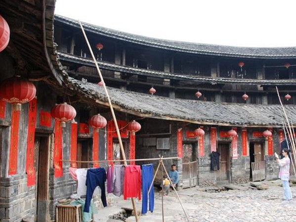 花萼樓占地面積2300平方米,建筑面積2286平方米,屬土木結(jié)構(gòu)的圓形建筑。共有三環(huán),內(nèi)環(huán)為一層30個(gè)房間,二環(huán)為二層60間,外環(huán)為三層120間,共有210個(gè)房間。樓高11.9米,樓的墻體用生土夯筑而成,底層寬2米。頂層寬1.3米,樓頂為木梁灰瓦。樓的第一層不設(shè)窗,第二、三層墻上設(shè)有內(nèi)小外大呈三角的槍眼,整座樓只有一個(gè)大門供出入,大門框用厚而寬的花崗巖石板組成,版權(quán)所有山東聊城聊之旅國際旅行社有限公司,轉(zhuǎn)載必究!大門板釘上堅(jiān)厚的鐵皮,這些門窗設(shè)施是為抵御外人侵?jǐn)_而特意設(shè)計(jì)的。樓內(nèi)有面積為283.4平方米的圓形天井,用大小不等的鵝卵石鋪成,中心裝飾著一個(gè)直徑3米的古錢幣圖案,寓意著人們祈求豐衣足食的心愿。天井一側(cè)有口古井,用于防火和生活之用。樓內(nèi)還有礱、碓等常用生活設(shè)施。整個(gè)土樓布局合理、通風(fēng)采光、冬暖夏涼,現(xiàn)樓內(nèi)還住著十多戶林姓人家。