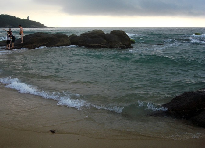 日月灣位于海南省萬(wàn)寧市加新、田新二管區(qū)之間,西連陵水縣,以牛嶺為界,是萬(wàn)寧市新開(kāi)發(fā)建設(shè)的旅游度假勝地。日月灣依山傍水,北面有山嶺環(huán)抱,南瀕南海經(jīng),是個(gè)半月形的海灣,海灣沙灘潔白松軟細(xì)柔,海面風(fēng)平浪,靜海水湛藍(lán)清澈,適宜游泳,是個(gè)天然海水浴場(chǎng)。海中有巨石激浪,頗為壯觀。境內(nèi)的茹新河和田頭河靜靜流淌,河流在日月灣內(nèi)出海,河海水相滲,咸淡互補(bǔ),水質(zhì)清凈,咸度適中,這里氣候宜人,四季如春,風(fēng)景秀麗,令人流連忘返。日月灣興建的度假村,經(jīng)兩年從的施工建設(shè),一幢設(shè)計(jì)精巧別具一格的樓房已經(jīng)落成。樓房有裝修精美,設(shè)備齊全的標(biāo)準(zhǔn)客房和豪華客房、餐廳、舞廳、會(huì)客廳、會(huì)議室,樣樣俱全。海邊筑有防潮堤壩,堤邊建有淡水游泳池。游客在海上玩夠后,可入淡水池游泳洗身。堤邊建有觀海亭和品茶室,游客可安閑地在亭里室內(nèi)品茶觀海,享受休閑之樂(lè),在海邊還建有別具風(fēng)情的小別墅,供伴侶共度良宵。整個(gè)度假村集住、吃、泳、玩、游于一體,環(huán)境幽靜,花木繁茂,景觀秀美,引人入勝,常年游客絡(luò)繹不絕。