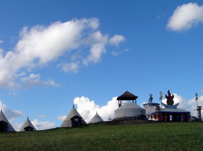 金帳汗蒙古部落是呼倫貝爾唯一以游牧部落為景觀的旅游景點(diǎn),位于呼倫貝爾草原“中國第一曲水”的莫爾格勒河畔。這里是中外馳名的天然牧場。中國歷史上許多北方旅游牧民族部曾在這里游牧,繁衍生息。十二世紀(jì)末至十三世紀(jì)初,一代天驕成吉思汗曾在這里厲兵秣馬,與各部落爭雄,最終占據(jù)了呼倫貝爾草原。金帳汗部落景點(diǎn)的布局,就是當(dāng)年成吉思汗行帳的縮影和再現(xiàn)。每逢夏季,陳巴爾虎旗走“放特爾”的蒙古族和鄂溫克族的牧民們便在這山清水秀、水草豐美的所在地,自然形成一個游牧部落群體。藍(lán)天白云,彎彎河水,茵茵綠草,群群牛羊,點(diǎn)點(diǎn)氈房,裊裊炊煙,使這里成為世界少有的游牧圣地。
