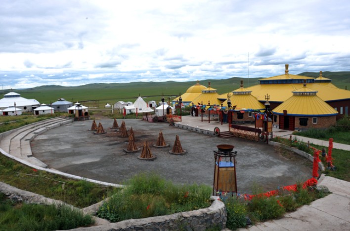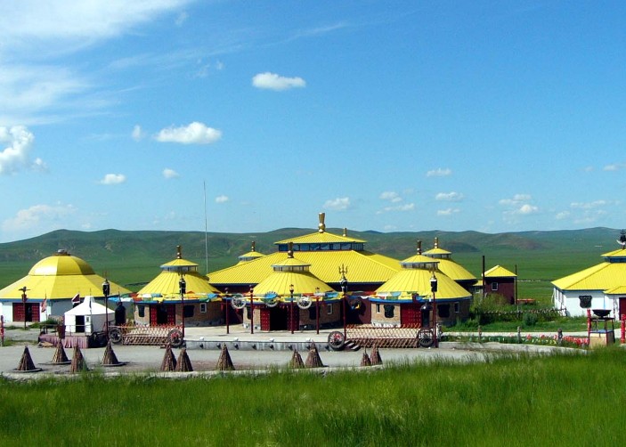 金帳汗旅游部落始建于1994年,是以部落樣式為主體,聚集了以蒙古民族為主的北方少數(shù)民族傳統(tǒng)文化、民俗民風(fēng)、宗教藝術(shù)、餐飲等綜合旅游服務(wù)景區(qū)?,F(xiàn)有固定資產(chǎn)200余萬元,占地面積100萬平方米。服務(wù)區(qū)以蒙古民族特色古樸典雅獨(dú)特風(fēng)格的282平方米的磚木結(jié)構(gòu)的蒙古包為主,周圍環(huán)繞坐落成吉思汗金帳、鄂倫春撮羅子、七星帳蒙古包群和達(dá)斡爾山莊,還有400多平方米的民族文化多功能涼廳和600平方米多功能觀賞博克擂臺、民族歌舞篝火晚會場等??赏瑫r接待1000余人就餐,100余人住宿;可舉辦大型民族體育賽會和大、中、小型歌舞表演、篝火狂歡晚會等娛樂活動。設(shè)有馬隊(duì)迎賓、套馬表演、馴馬表演、馬群瞬間攝影、祭敖包、蒙古族博克表演、鄂倫春、鄂溫克、達(dá)斡爾三少民族民情演示、訪牧戶體驗(yàn)生活、騎馬、騎駱駝攝影、騎馬觀光、乘勒勒車、米日桿車觀光、篝火狂歡晚會、民族歌舞表演、射箭、打彈弓、飛鏢等活動項(xiàng)目,已達(dá)到了游、行、住、食、娛、購六大要素為一體的大型民族民情、民族文化的草原景點(diǎn)。