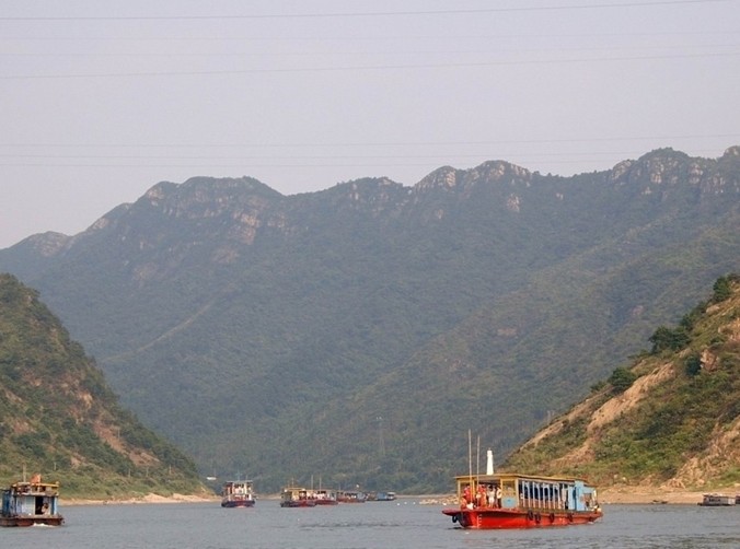 正在這個時候,忽然喬起巨大臺風(fēng),燒荒野火又蔓延開來,火借風(fēng)勢,風(fēng)助火威,焚燒大地,直向北方卷去。沿途百姓的村莊也燒成平地。大禹兄弟連忙前往搶救,作法驅(qū)使大海浪潮,洶涌向北,沖刷出一條河流,使海潮北上,淹滅大火,搶救黎民百姓的房舍,牲畜等財產(chǎn)。大火蓬蓬向北方蔓延,海潮沖刷著河道向北伸展,正要與北方大江會合,最終撲滅火災(zāi)。忽然有一座孤危兀立的大山,接往海潮去路,眼看熊熊烈火越過山峰,向北方燒去,將造成更大的禍害。大禺仲陽兄弟立即運(yùn)用神力,命陪巨初、武二將,手持神斧,向阻路大山劈去,霹靂一聲,震撼大地,一陣?yán)坐Q電閃,山裂嶺崩,這座大山,當(dāng)場被劈開兩邊,海潮當(dāng)中沖入,穿透山谷,接通北方大江,一時波濤洶涌,巨浪凌空,把大火徹底撲滅了,一場彌天大禍也就此消除了。這座擋路大山被劈開后,自此,北江大河就在當(dāng)中流過,使之成為險峻的峽谷。峽內(nèi)奇峰壁立,夾峙江流,山水相輝,成為勝景。
