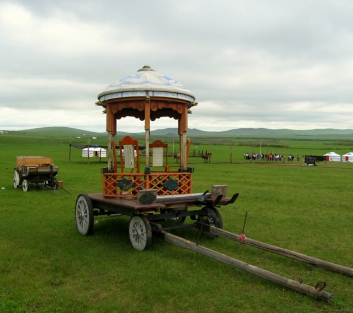 第1天:抵海拉爾區(qū),在海拉爾內(nèi)觀光,安排住宿。第2天:早餐后赴陳巴爾虎旗金帳汗旅游部落,下馬酒、祭敖包、觀摔跤、套馬表演,著民族服裝拍照,品嘗蒙古族風(fēng)味餐——手扒肉,乘勒勒車,騎馬游草原,觀民族歌舞,篝火晚會,返市。