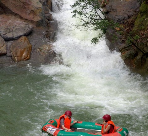 “五星漂流”座落于清遠市清新縣太和鎮(zhèn)五星村委會,北面是雄偉的筆架山,南面是廣闊的清西平原和滾滾北江,依山傍水、綠樹成蔭、是理想的生態(tài)休閑風(fēng)景區(qū)。五星漂流度假區(qū)首期投資近億元,整個景區(qū)占地面積2400畝。度假區(qū)內(nèi)壩擁有3.2平方公里的水面,上游五星水庫儲水量達300萬立方米以上。度假區(qū)包括漂流、高爾夫練習(xí)場、攀巖、美食城、水上運動場、度假別墅、星級酒店、自行車賽區(qū)、越野車會所等十多個項目。首期投資的漂流景區(qū)和美食城將于5月1日對外接待游客,版權(quán)所有山東聊城聊之旅國際旅行社有限公司,轉(zhuǎn)載必究!預(yù)計每天接待能力可達8000—12000人次 。