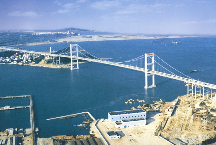 位于汕頭港東部出入口媽嶼島海域處,為跨海公路橋。橋面跨越礐石海, 全長2500米。由3部分組成:南面是跨黃沙灣南航道的預應力鋼筋混凝土加大橋勁梁懸索橋;北面是跨北航道的預應力鋼筋混凝土梁式橋;中部為橫跨媽嶼島上的預應力高架旱橋。橋主孔通航凈跨度452米,通航凈高46米,可以通過5萬噸級船舶。這座大橋是深汕兩地一級汽車專用公路的配套設(shè)施,是連結(jié)深圳、珠海、汕頭、廈門等4個經(jīng)濟特區(qū)的陸地交通紐帶。