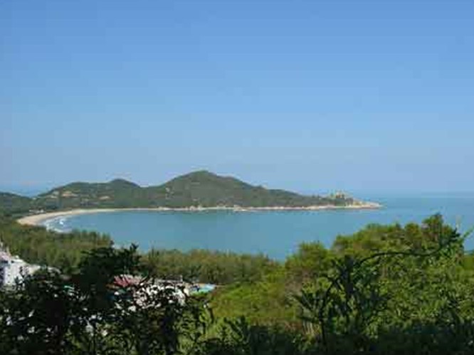 素有“東方夏威夷”之稱的青澳灣,海灣似新月,海面如平湖。金黃柔軟的沙灣綿延2400多米,坡度平緩,沙質潔凈,一直延伸至水下百米以外,無礁石無淤泥;海水無陵質無污染,潮漲潮落不改澄碧顏色;背倚險峻高山,山上奇石嶙峋;環(huán)抱海灣的是縱深百米的防風林帶,四季郁郁蔥,同晶瑩金黃的沙灣、湛藍透亮的海水,形成了分明的立體層次,是廣省兩個A級沐浴海灘之一。