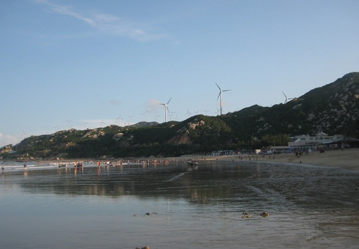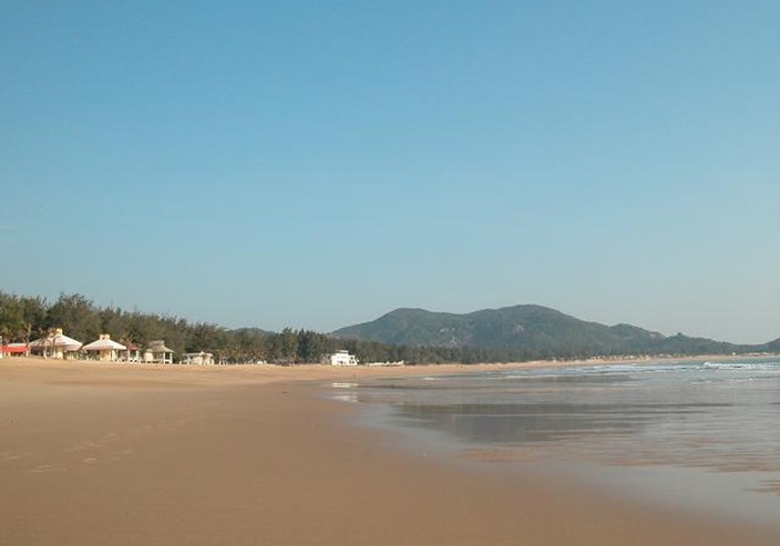 青澳灣,灣口朝東南,灣腹很深,灣弧達2.9公里。嶺頭新建的一座涼亭,名曰:“覽月亭”。成排成片的木麻黃樹循著孤形沙灘蔓延開去。海浪、白沙、林帶以及林中新筑的各式亭臺樓閣,構成了色彩斑斕的海市蜃樓圖景。據說沙灘長達2.4公里,沙帶寬近百米。沙灘向海延伸坡度平緩,數十米內海水僅米余深,是海浴的理想場所,被譽為“泳者天池”,是廣東省僅有的兩個A級海濱浴場之一。