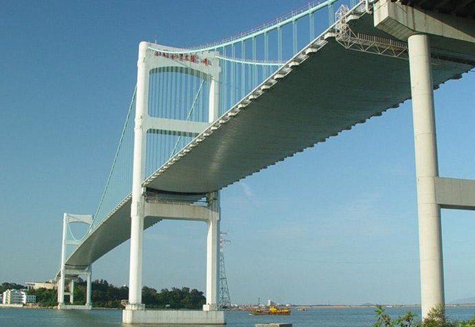 汕頭礐石大橋南起國道324廣汕公路,跨越汕頭海港,北與國道206線聯(lián)接,是繼汕頭市市區(qū)東部建成的海灣大橋后動工興建的第二座特大型跨海大橋,總概算人民幣12.5億,大橋正橋全長2865米,全橋包括互通立交,引橋匝道、引道總延長米為5976米。全橋六車道,兩側加設人行觀光道,橋面總寬30.5米。主塔塔身高148米,主橋主跨518米,通航凈高38米,可通航2萬噸級船舶。大橋主橋鋼絞線斜拉索和鋼箱梁與PC梁混合梁的結構,為我國首例,技術先進,氣勢磅礴,大橋于1998年12月建成。礐石大橋的建成將與海灣大橋形成跨海交通環(huán)線,對推動和改善汕頭市投資環(huán)境和發(fā)展經(jīng)濟起到重大的作用。