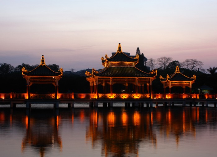 這是1986年建成開放的新景點(diǎn)。它采用中國庭園設(shè)計(jì)手法,庭廊相接,曲折回環(huán)。館中陳列著各種新奇花卉和盆景。這是一個小型花苑,如果對盆景有興趣的游客,在這里可以欣賞到很多各具特色的盆景,在“縮景為寸”的天地中領(lǐng)略到各處大自然的美景。宮苑里一年四季鮮花盛開,有不少是熱帶或寒帶才能生長開花的品種,所以這里又是一個鮮花鑒賞的新天地。這座宮苑開放以來,每天都接待不少海內(nèi)外旅游團(tuán)體和個人,他們都稱贊說:“這是南國獨(dú)有的一條風(fēng)景線”。