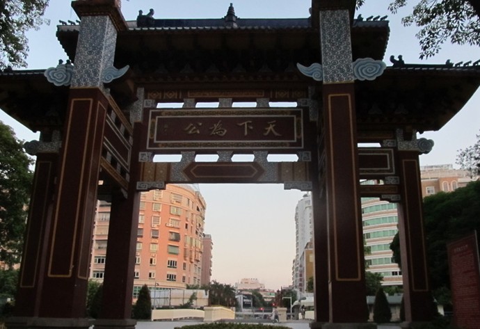 這是一座具有中國建筑傳統(tǒng)特色的牌樓,整體建筑雄偉壯觀,古色古香。牌樓建于1930年牌樓由六根紅色大方柱支撐,柱高30米,底座由約1米見方的花崗巖石砌筑,亭頂以琉璃瓦覆蓋,所以牌樓不但顯得堅(jiān)固莊重,而且金碧輝煌。“中山公園”四個字是譚延闿手書,其書法結(jié)構(gòu)嚴(yán)謹(jǐn),端莊中透出秀氣,版權(quán)所有山東聊城聊之旅國際旅行社有限公司,轉(zhuǎn)載必究!和莊嚴(yán)大方的牌樓正好相配。譚延闿是湖南茶陵人,清朝光緒年間的進(jìn)士,曾任翰林院編修,以后跟隨孫中山革命,歷任都督、部長、總司令、國民政府主席等職。他從政之余又研究書法,其書法在法歸頗有名氣。牌樓背面是孫中山手書放大的“天下為公”四個金字,行筆舒展,剛?cè)嵯酀?jì),顯得俊逸開闊。高聳的紅色牌樓和碧綠挺秀的樹木交相輝映,構(gòu)成一幅美麗的畫圖,成為公園的標(biāo)志性景點(diǎn)之一,所以很多游客喜歡在此照相留念。