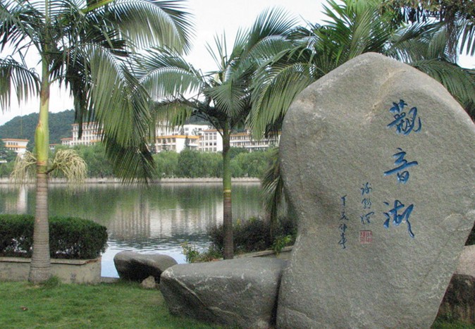 觀音嶺位于碣石鎮(zhèn)北與金廂交界之處,因嶺上有觀音禪淙堂(水月宮)而得名。嶺下海灘長達8km,海中距岸lOOm處水深才1,5m,距岸200m水深2m。沙白、水清、浪小,是一個理想的天然游泳海灘。嶺前奇山眾多,有周恩來、葉挺同志當年搶渡香港下海處的龍石,汕尾市境內(nèi)最大的摩嶺刻“鎮(zhèn)海石”,明欽差大臣成大猷、鄭岳山刻“鎮(zhèn)海石”,“揚威止水”于鎮(zhèn)海石上。該處以“神、海、沙、石”兼?zhèn)涠劽?,中國書法家協(xié)會主席啟功先生題“粵東旅游黃金海岸”于石上。