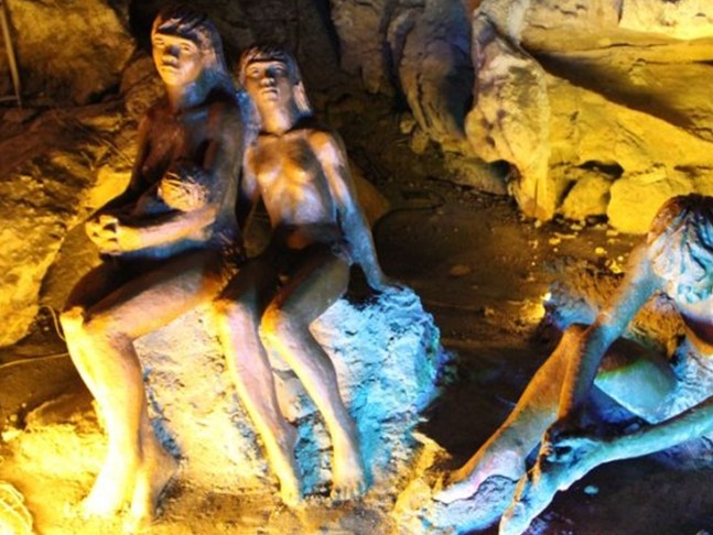 獅子巖以出土“馬壩人”頭蓋骨和“石峽文化”遺址而蜚聲中外。馬壩人是介于中國(guó)猿人和現(xiàn)代人之間的一種古人類,考古學(xué)家和藝術(shù)家在銀巖內(nèi)塑造了12萬(wàn)年前馬壩人的生活群像,在桂花巖內(nèi)再現(xiàn)了四五千年前馬壩新人生活群像,洞外有多種游樂(lè)設(shè)施,有仿古式的“野烤洞”和“狩獵沖”,可乘仍古獨(dú)木舟游洞中湖。