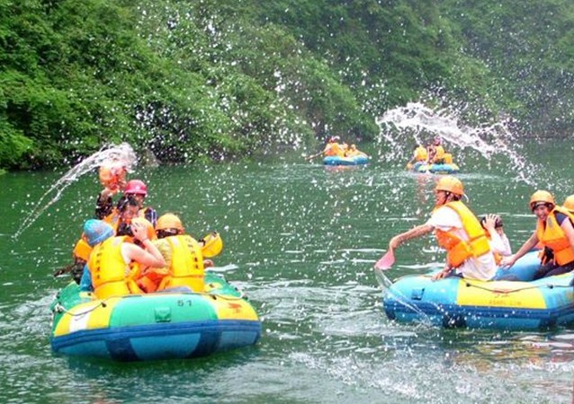 必背峽谷漂流 必背峽谷漂流是一條充滿瑤族風情的旅游線路,必背瑤寨地處韶關乳源瑤族自治縣的崇山峻嶺之中,瑤寨散布,蘊藏著獨有的民俗習慣,瑤胞能歌善舞、熱情好客。在漂流前,還可欣賞“上刀梯”、對瑤歌等瑤族歌舞,版權所有山東聊城聊之旅國際旅行社有限公司,轉(zhuǎn)載必究!再喝一杯“認親茶”。