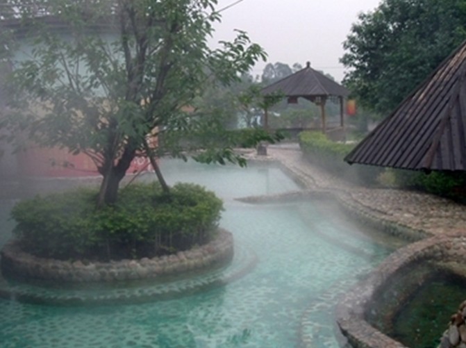 龍華山溫礦泉度假村位于粵北古鎮(zhèn)南雄市西北6公里的龍華山麓腳下,豐富的天然溫泉蘊藏其內(nèi),大自然賜予四口日夜不停流,人們可聞可飲的自涌重碳酸溫泉口,被地礦部斟評為“珍稀溫礦泉水”。度假村經(jīng)名山高人斟點依大風水格局,合溫泉自涌地點,北建天池面積200平方,分高、中、低溫池、水療臺。在泡溫泉中體會“洗棄煩心事,又是好一天”的境界。南建八卦溫泉,把人的十二生肖鑲?cè)氚藗€卦位池,在泡溫泉中體會 “沐八卦,轉(zhuǎn)乾坤”的作用。南北之中建有長50米面積1000平方的溫泉游泳館,地下溫泉迷宮,在泡溫泉中體會“下地入宮尋往事,死去活來又一回”脫俗之感。東南建有保健中心,水上餐廳,西南建有風格各異的賓館區(qū)和別墅區(qū),以營造家庭氛圍,鄉(xiāng)土風情,風水與人體相合為主題,體會“日沐溫泉浴,夜聞鳥蟲鳴,春夢一覺醒,仿如在仙境”。