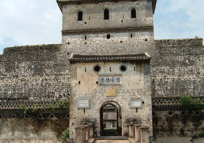雙峰寨,外形成長方形,石灰及青磚砌成,是少有的巨型寨堡。
