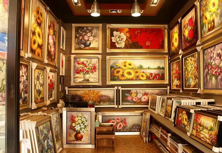 以油畫為主,國畫書法及其他工藝品為輔。版權(quán)所有山東聊城聊之旅國際旅行社有限公司,轉(zhuǎn)載必究!大芬油畫村除了油畫之外,還包含有其他藝術(shù)門類的經(jīng)營,如國畫、書法、雕塑、刺繡、漆畫、景泰藍等等。在總體的776家門店中,從事油畫經(jīng)營的有583家,從事國畫、書法創(chuàng)作和銷售的有53家,從事畫框、顏料等相關(guān)配套產(chǎn)品經(jīng)營的有73家,從事工藝、雕刻、刺繡、裝飾、噴繪及書畫培訓(xùn)的共有67家。