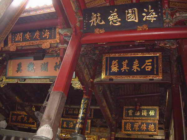 走進(jìn)臺(tái)南大天后宮時(shí),才發(fā)現(xiàn)大天后宮那富麗堂皇,威嚴(yán)顯赫的氣派,已極盡了宮殿建筑的豪華壯麗。由大門朝里望,透過三進(jìn)逐次升高的天井和房舍狹長(zhǎng)的空間,可以遙見那香煙繚繞、金黃帷幕下的全身媽祖神像。廟宇堂皇壯觀,信徒眾多,香火鼎盛。由于受到歷代官府的整修和保護(hù),大天后宮內(nèi)文物保存較多。廟中神像佛像也多為名家雕塑,石雕、木雕的柱、窗、梁都有很高藝術(shù)價(jià)值。還有許多古碑、古匾、古聯(lián)等珍貴的文物,據(jù)說單單古匾就有200多塊,平時(shí)無(wú)法全部掛出來(lái)。最寶貴的是雍正皇帝所賜的“神昭海表”、咸豐皇帝的“德侔厚載”、光緒皇帝的“與天同功”等御筆匾。由此可見,大天后宮與普通天后宮、普通廟宇相比,簡(jiǎn)直就有一個(gè)天上、一個(gè)地下的感覺。