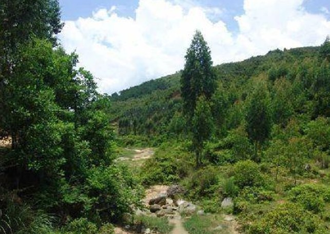 雙峰嶂,位于是塘蓬鎮(zhèn)西北,海拔382米,是湛江市第一高峰。雙峰東西并立,相距不過數(shù)十米,峰廓渾賀,宛若美人又乳,故名。雙峰嶂東令仙人嶂 ,西靠婆髻嶂,遠看酷似一尊巨大的睡美人像:頭在婆髻嶂,胸在雙峰嶂,臀在仙人嶂。登臨雙峰 ,極目遠眺,十萬大山余脈蒼蒼莽莽,鶴地?zé)煵烀烀C?,長青水共天一色,九洲江如飄玉帶。如畫仙境,盡收眼底。