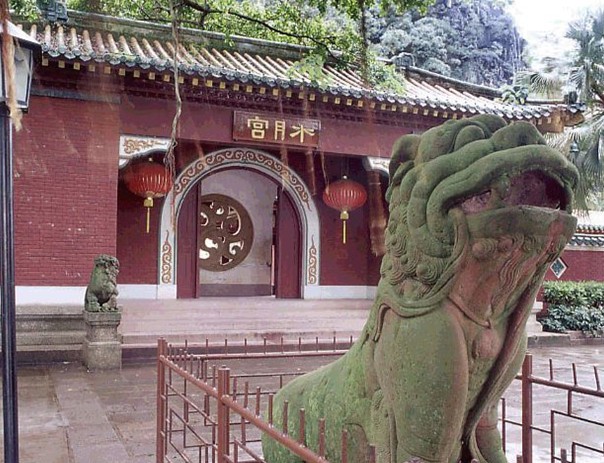 水月宮,位于肇慶市星湖中心區(qū)石室?guī)r南麓,北靠崧臺,面臨紅蓮湖,曾因立有高6米、重7噸的銅鑄佛像摩利支天而聞名省港澳和東南亞各國。 水月宮原為觀音堂,建于明嘉靖年間(1522-1566年),但“頻年為風(fēng)雨所折”,后得官民“樂于趨事”,遂于明萬歷二年(1574年)冬“辟廣升高,壯址展基”。 據(jù)傳,觀音能顯現(xiàn)32種不同的應(yīng)化色相,其中以“水月”色相最為高潔,因名“水月宮”。宮殿建成后再為風(fēng)雨所折。明崇禎九年(1636年),兩廣總督熊文燦傾貲十余萬重建。1943年,水月宮遭日寇空襲炸毀。1957年,水月宮按原樣再行重建。 水月宮占地面積6000平方米,建筑面積2500平方米,為鋼筋混凝土仿古殿式結(jié)構(gòu),由大殿、東廂、西廂、后殿4部分組成:大殿,飛檐斗拱、彩釉生輝、華麗堂皇;東西兩廂,精美質(zhì)樸、寬敞明亮,建有回廊相連;后殿,一座兩層高的樓閣,依巖建在高臺上,尤顯其巍峨雄壯。 水月宮大殿昔有摩利支天菩薩(身高6米)偕二天女(身高5米),金身巍然,赤足鼎立;摩利支天雙目稍向下凝望,版權(quán)所有山東聊城聊之旅國際旅行社有限公司,轉(zhuǎn)載必究!微笑、溫厚、慈祥,楣榜“苦海慈航”。佛像鑄于明崇禎九年(1636年),為表彰鄭芝龍得摩利支天庇佑戰(zhàn)勝劉香所鑄??上гT件已全部毀于“文化大革命”的烈焰之中?,F(xiàn)在看到的摩利支天偕二天女是1986年鑄造的復(fù)制品。 水月宮有紅墻相圍。墻內(nèi)大殿前,設(shè)有庭院式花園,四時繁花似錦,爭艷斗麗;墻外大門前,種有百年古榕6棵,盤根錯節(jié),枝葉繁茂。