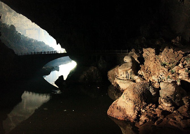 洞中曲徑通幽,石筍、石柱、石鐘、石人、石馬、石獅••••••或依或臥,或垂或立,栩栩如生。有將軍騎馬、梁祝攜手、三妹放歌、觀音坐蓮、寶鴨倒影、和尚念經(jīng)、庵中尼姑等五十六景。這些景點(diǎn)倒影在溪水之中,更是一幅幅奇麗的畫圖,使人遐想連篇。從前,洞內(nèi)建有立琴廟、文昌閣、劉三妹寺等景物。傳說歌仙劉三姐當(dāng)年為逃避地主老財(cái)?shù)谋坪?,在洞中居住多年,天天在這里唱歌。民間傳說劉三姐在這里升仙,留下的化身便成了“三妹放歌”的景點(diǎn)。