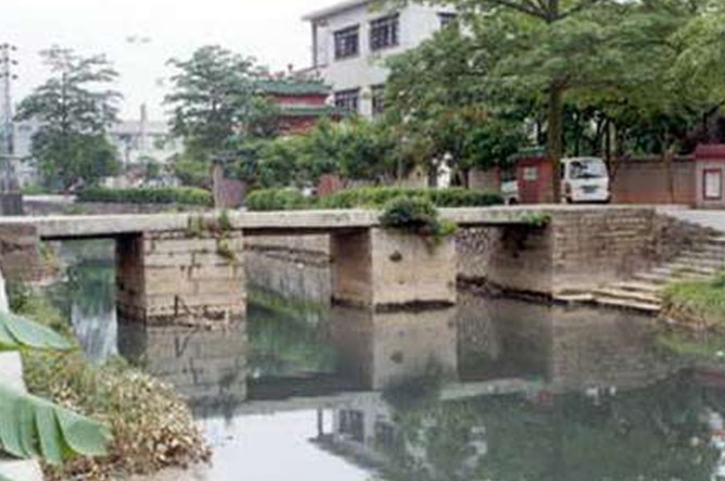 該橋?yàn)槿资瘶?,長19.1米,寬2.5米,主橋用5條花崗石條鋪成,花崗石橋礅。